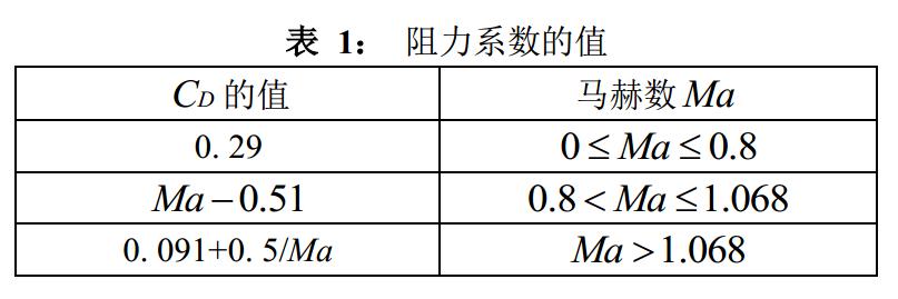 通過查閱相關(guān)參數(shù)數(shù)據(jù)得到衛(wèi)星質(zhì)量m=13200kg, 并假設(shè)衛(wèi)星受阻面積為16m2, 對地軌道速度為7800 m/s, 即Ma= 22.9. 從表 1中我們可以得到相應(yīng)的CD=0.11283. 從ρ(h)函數(shù)關(guān)系可以解出如下表所示的在一些特定高度的大氣密度估計值.
