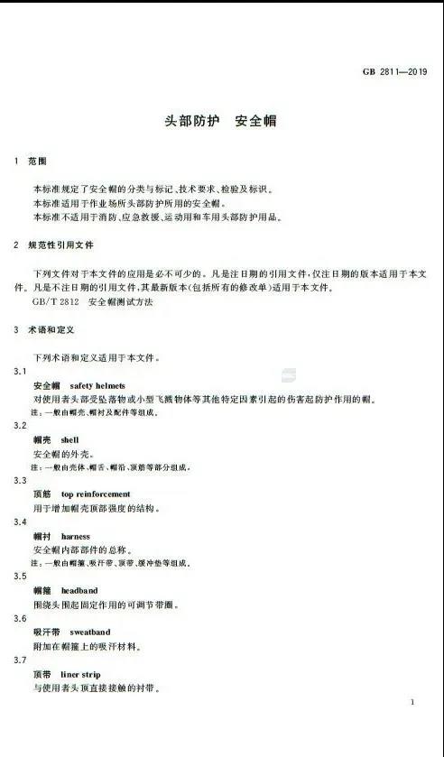 國家市場監(jiān)管總局、國家標(biāo)準(zhǔn)委批準(zhǔn)發(fā)布新版安全帽標(biāo)準(zhǔn)GB2811-2019《頭部防護(hù) 安全帽》,將于2020年7月1日起正式生效。